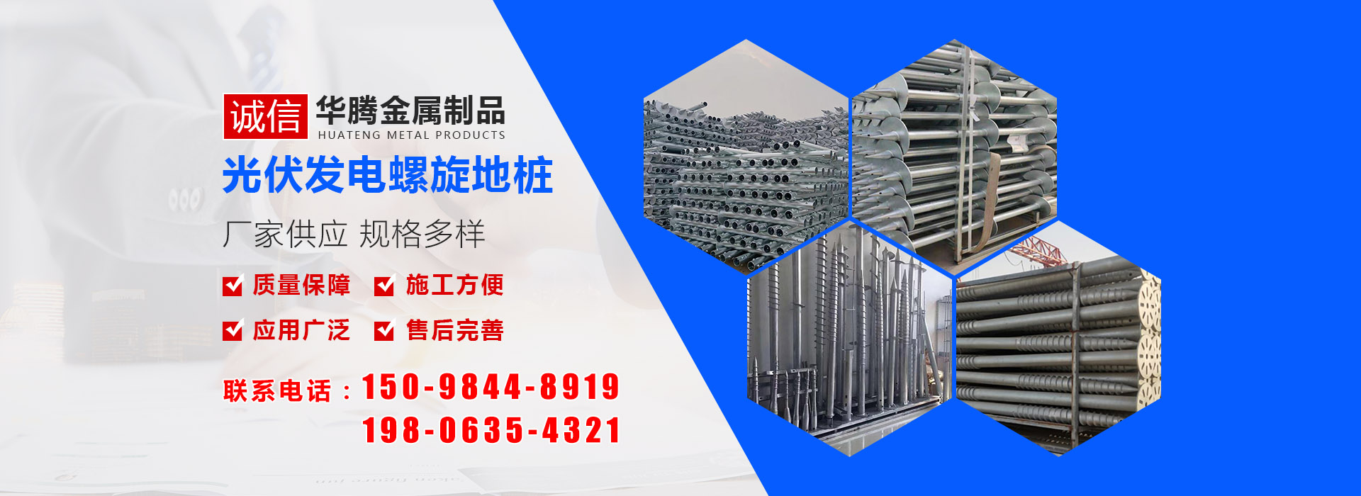 華騰金屬制品 (山東) 有限公司是螺旋地樁定制銷售公司,主營光伏螺旋地樁、光伏地樁等產品所生產的光伏螺旋地樁品種規(guī)格齊全,并可根據客戶的需求、圖紙、樣品研發(fā)產品。多年來我們以優(yōu)良的服務及高精端產品贏得了國內外廣大客商的贊譽及肯定,光伏螺旋地樁等產品廣泛應用于光伏太陽能電站樁基、房屋建筑樁基、...…